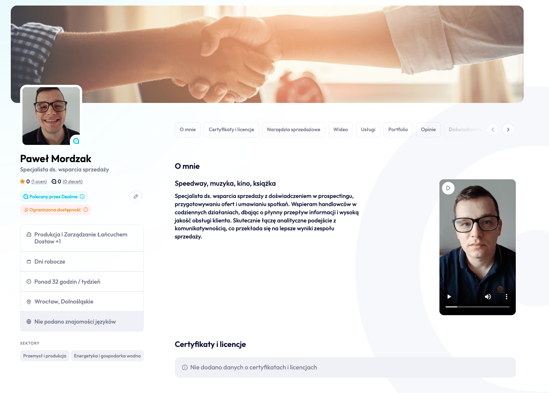 Nie musisz samodzielnie przeglądać profili. Naszym priorytetem jest to, żeby Twój deal został dowieziony, a nie żebyś tracił czas na szukanie wykonawcy.