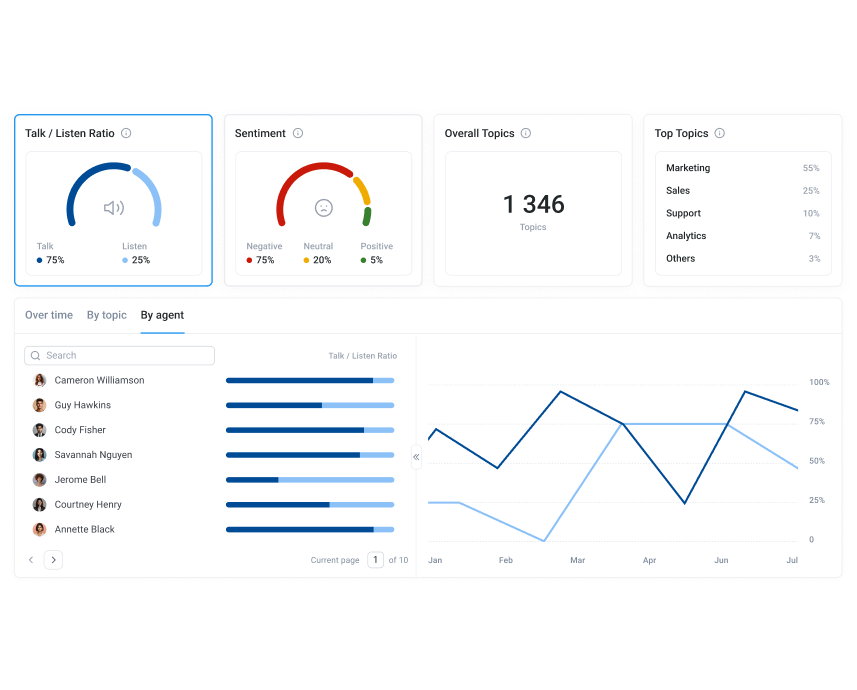 CloudTalk zapewnia menedżerom wgląd w połączenia, produktywność konsultantów oraz jakość obsługi klientów. Analiza centrum kontaktowego, call recording i monitorowanie połączeń i procesów pozwalają na ciągłą optymalizację połączeń oraz poprawę communication efficiency w skali całej organizacji. Oznacza to możliwość identyfikacji najbardziej efektywnych kampanii, najlepszych praktyk sprzedażowych oraz obszarów wymagających wsparcia szkoleniowego.