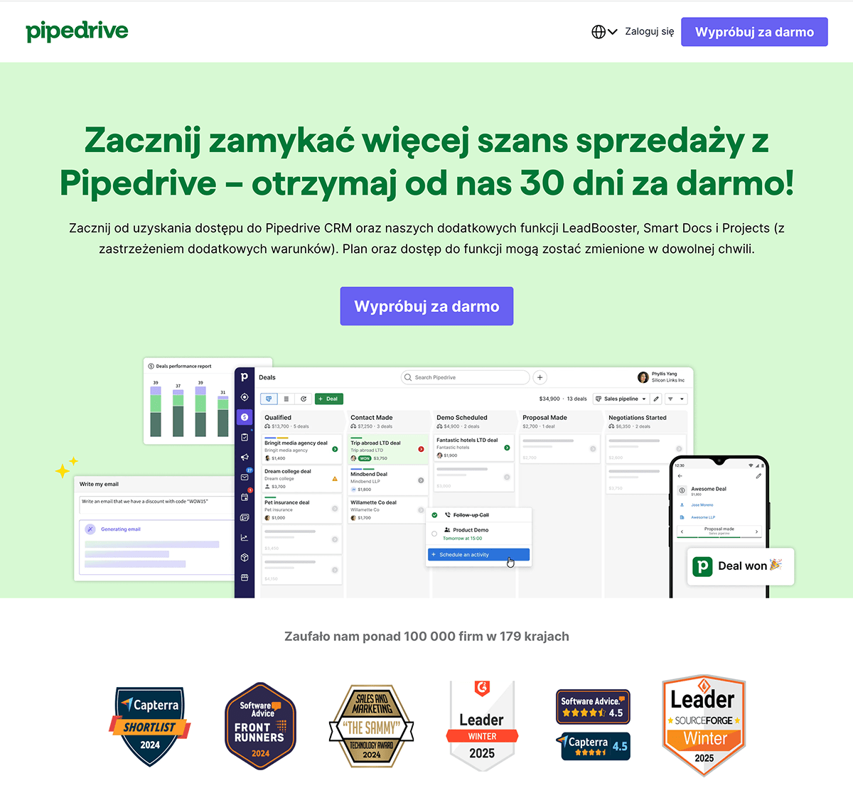 Najlepsza alternatywa Pipedrive, idealny dla firm MŚP i zespołów sprzedaży